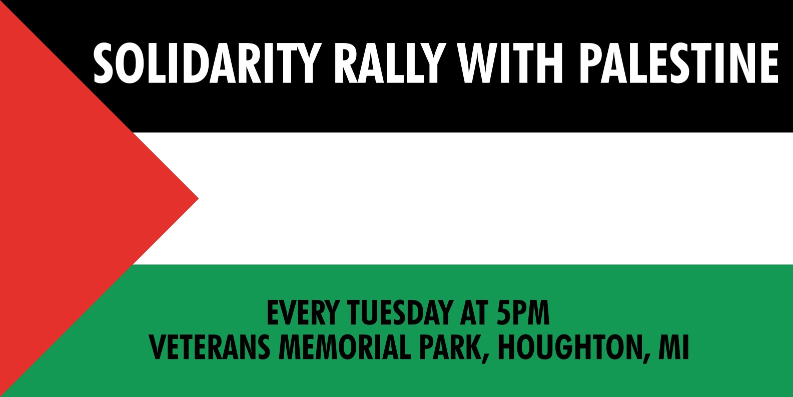 Join us for weekly rallies in solidarity with Palestine every Tuesday at 5pm at Veteran's Memorial Park in Houghton.